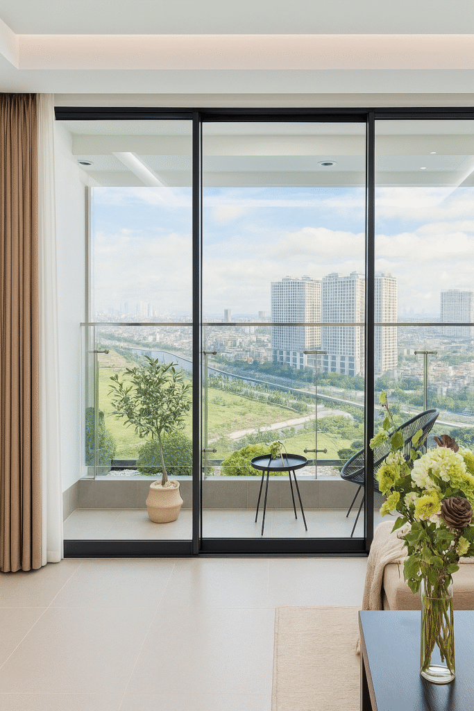 Ánh sáng tự nhiên: Hệ thống cửa sổ lớn giúp tận dụng tối đa ánh sáng tự nhiên, giảm thiểu việc sử dụng điện năng ban ngày.